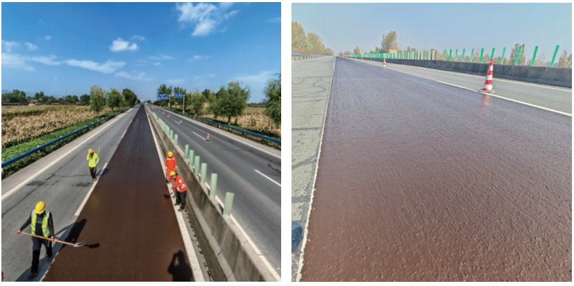 以聚合物改性乳化沥青为粘结料、借助专用的摊铺设备进行施工,可以迅速恢复和改善原沥青路面的平整度。